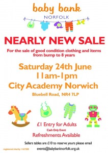 Get the date in your diary. If you would like a stall please email events@babybanknorfolk.org.uk and if you’re on the look out for some bargains for your family, be sure to come along to City Academy on Bluebell Road on the 24th June.